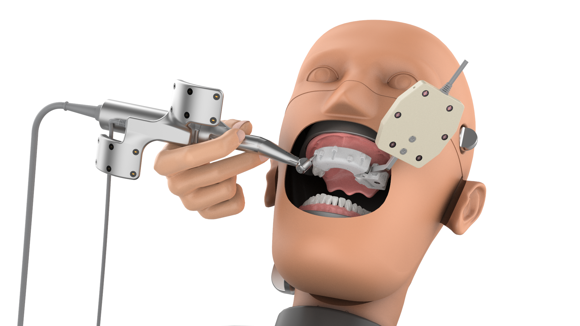 3、 常規(guī)的術(shù)前準備過程中加入導(dǎo)航的標定和配準環(huán)節(jié),將患者的口內(nèi)信息與導(dǎo)航軟件進行匹配,保證實時追蹤;