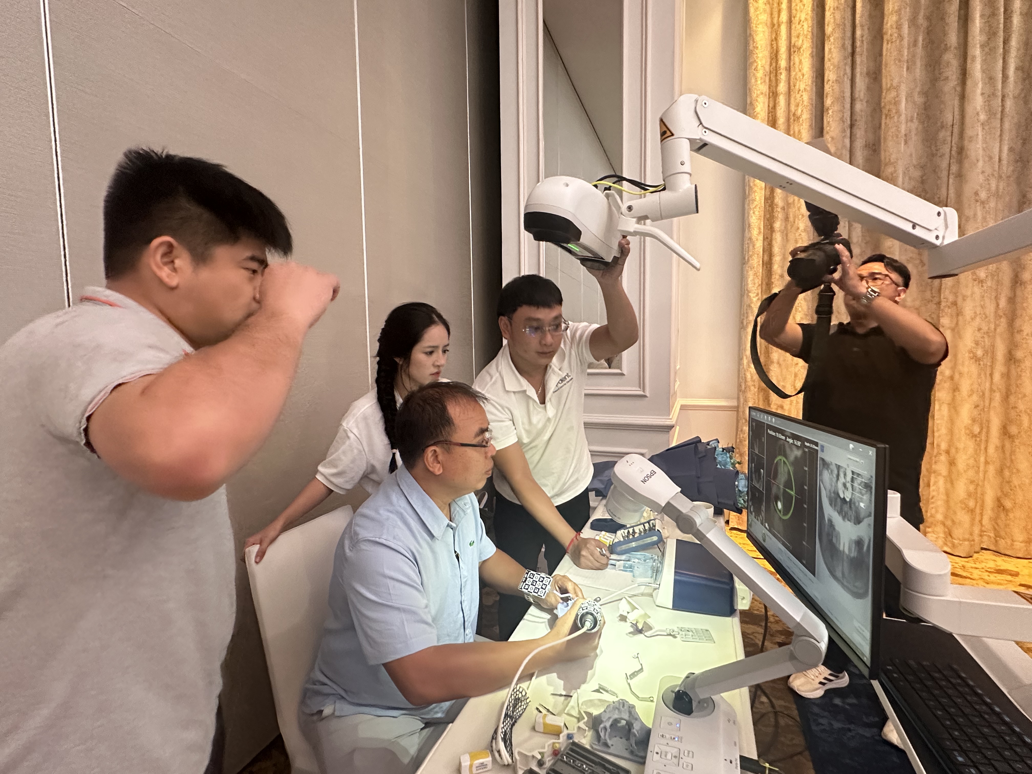 About 50 dentists from the Vietnam Dental Union participated in this academic exchange meeting, and in the afternoon edentulous navigation practice, many doctors seriously experienced the stability and accuracy of Dcarer navigation, and also experienced the intelligence and convenience of Ai artificial intelligence in the process of digital program design.