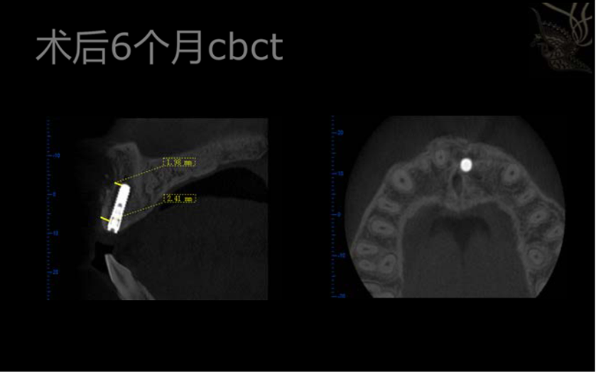 術(shù)后6個月CBCT,頰側(cè)無明顯骨吸收,骨結(jié)合良好
