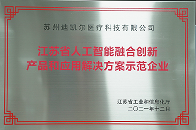 蘇州迪凱爾醫(yī)療科技有限公司(以下簡(jiǎn)稱“迪凱爾”)在2021年12月榮獲“蘇州工業(yè)園區(qū)新一代人工智能創(chuàng)新應(yīng)用場(chǎng)景示范企業(yè)”的稱號(hào)。